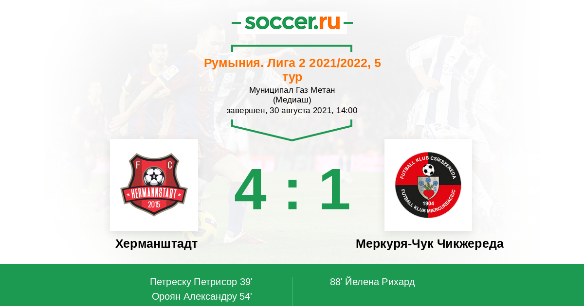 Херманштадт - Меркуря-Чук Чикжереда: обзор матча 30 августа 2021