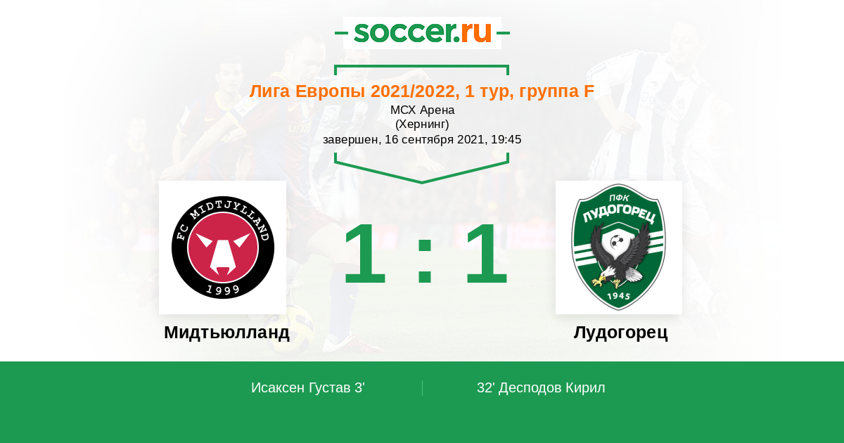 Мидтьюлланд - Лудогорец: обзор матча 16 сентября 2021