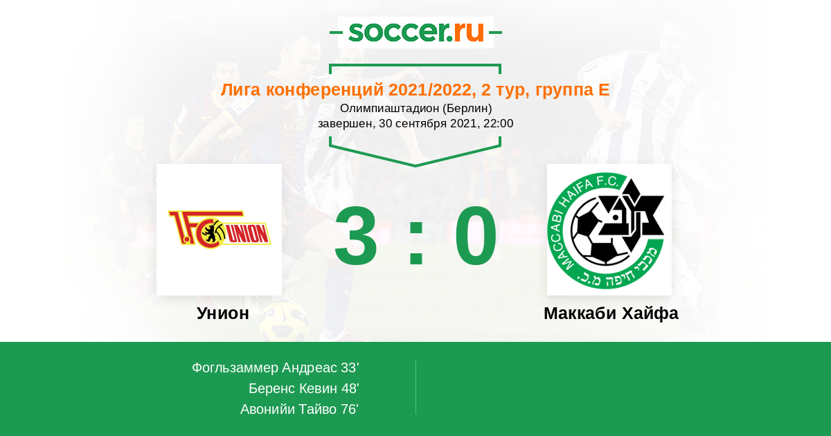Унион - Маккаби Хайфа: обзор матча 30 сентября 2021
