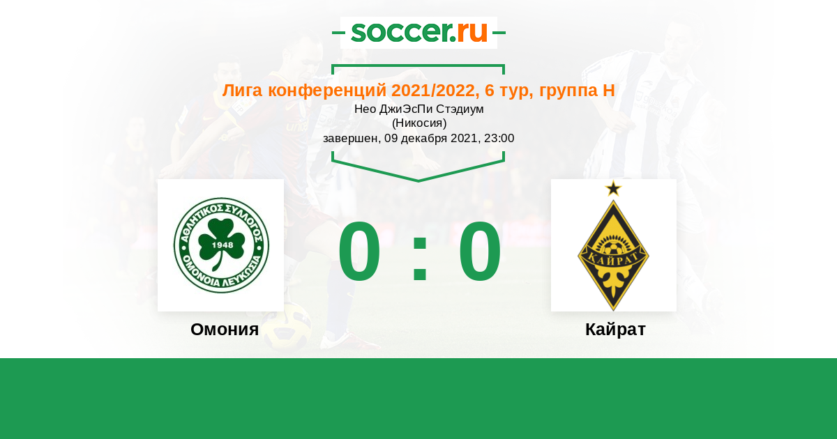Омония - Кайрат: обзор матча 9 декабря 2021