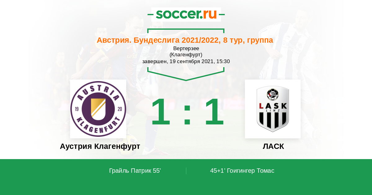 Аустрия Клагенфурт - ЛАСК: обзор матча 19 сентября 2021