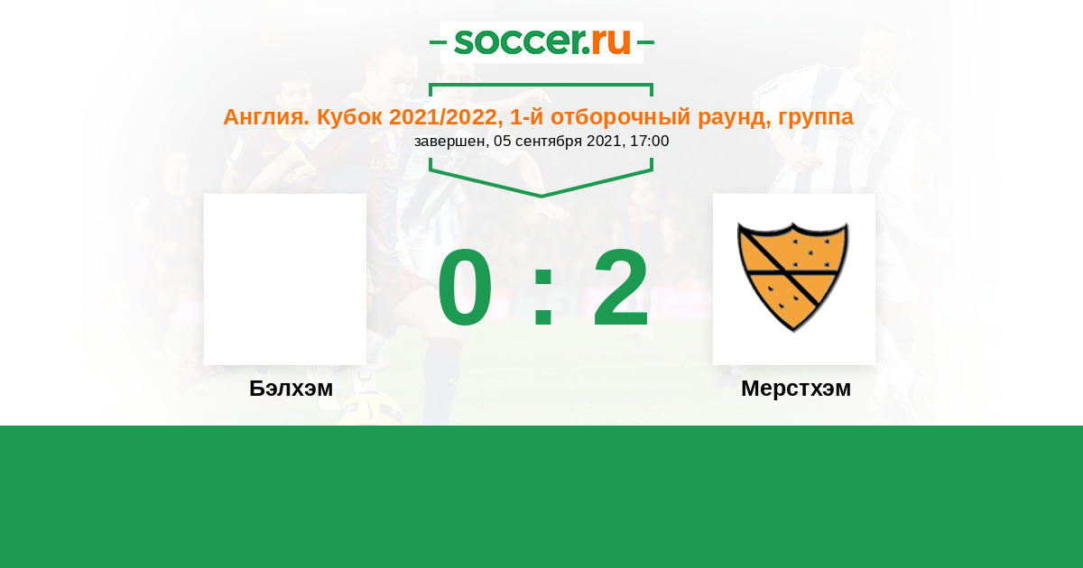 Бэлхэм - Мерстхэм: обзор матча 5 сентября 2021