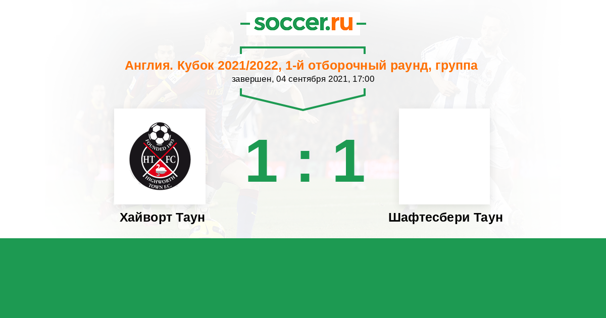 Хайворт Таун - Шафтесбери Таун: обзор матча 4 сентября 2021