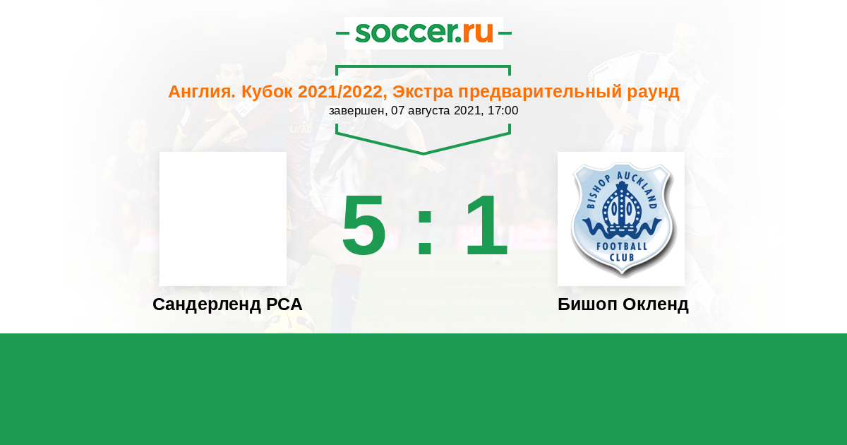 Сандерленд РСА - Бишоп Окленд: обзор матча 7 августа 2021