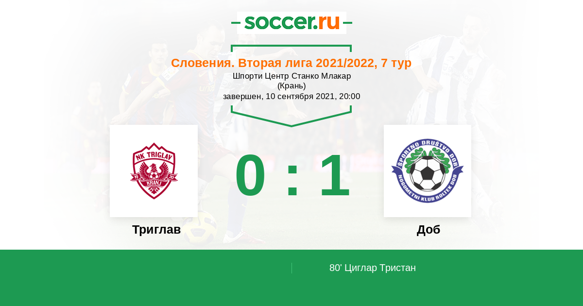 Триглав - Доб: обзор матча 10 сентября 2021