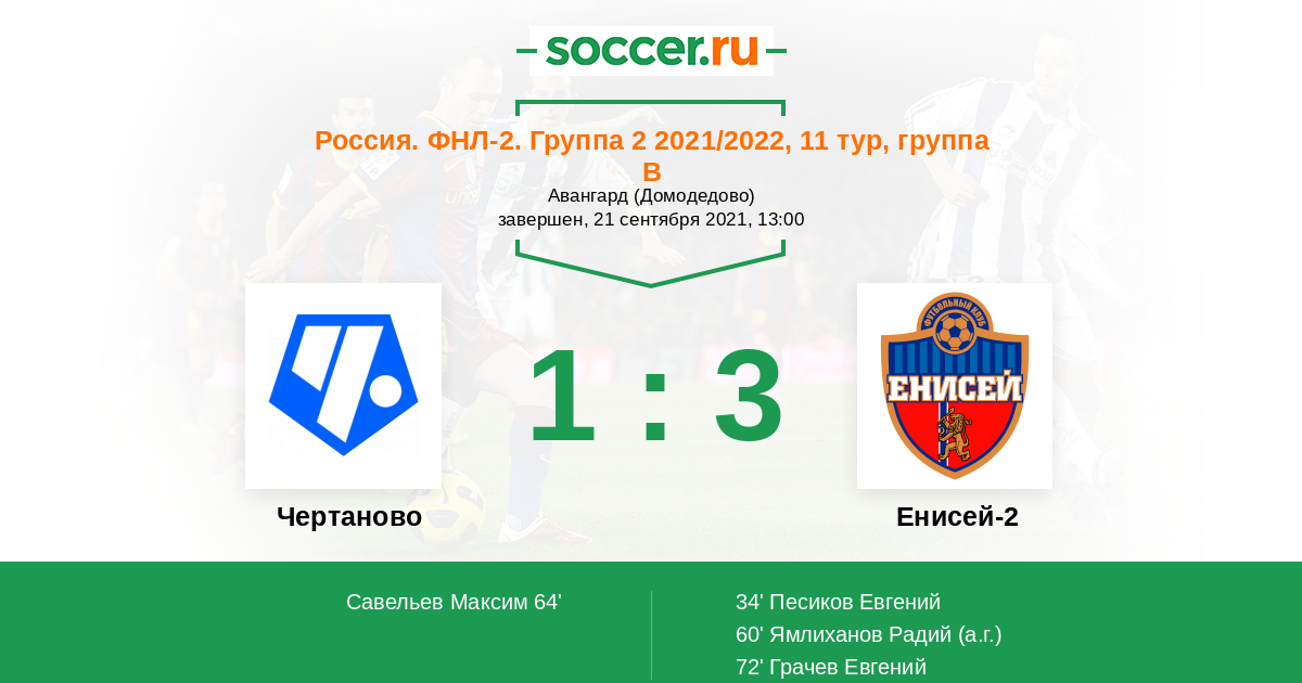 Чертаново - Енисей-2: обзор матча 21 сентября 2021