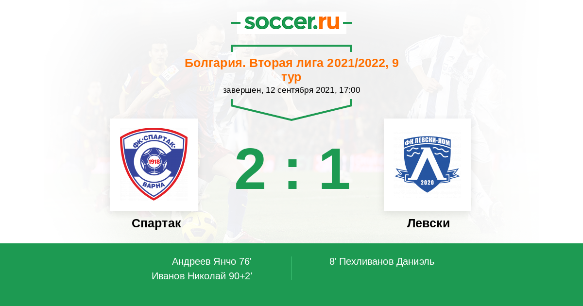 Спартак - Левски: обзор матча 12 сентября 2021