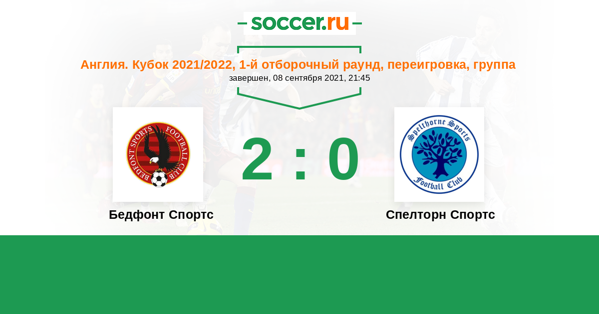 Бедфонт Спортс - Спелторн Спортс: обзор матча 8 сентября 2021