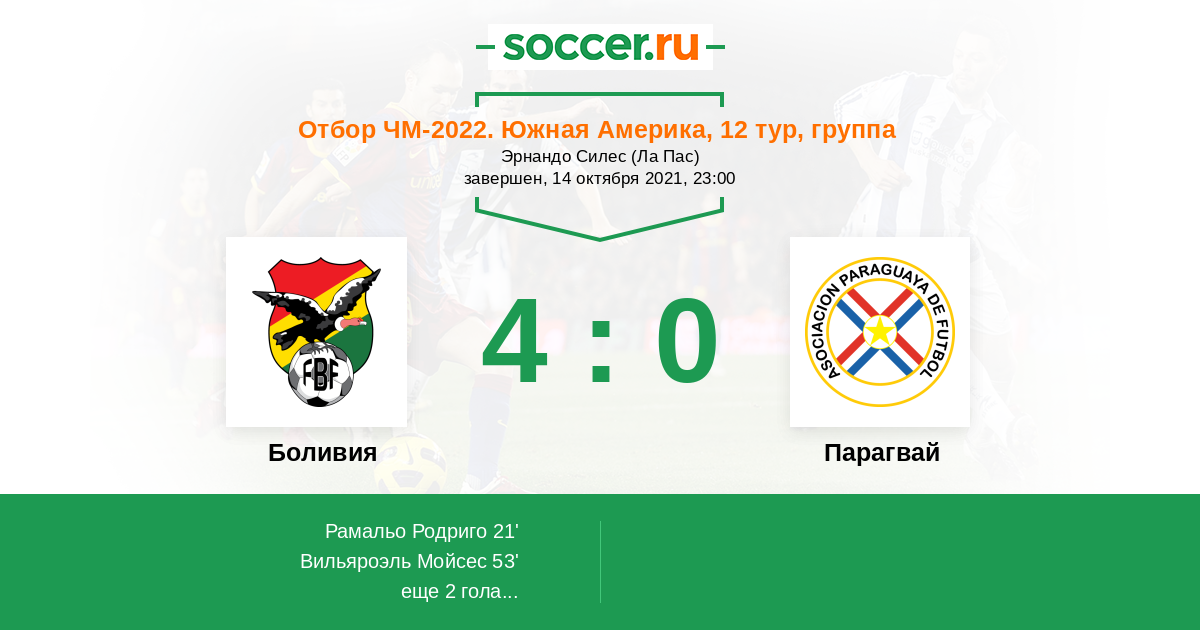 Боливия - Парагвай: обзор матча 14 октября 2021