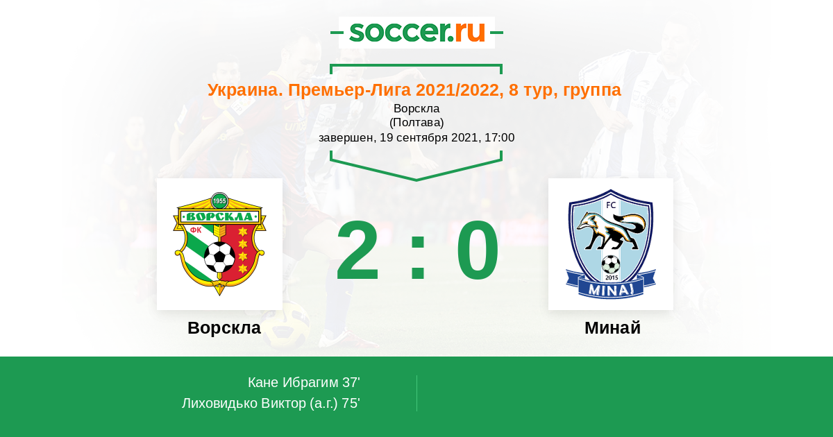 Ворскла - Минай: обзор матча 19 сентября 2021