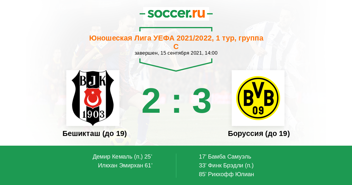 Бешикташ (до 19) - Боруссия (до 19): обзор матча 15 сентября 2021