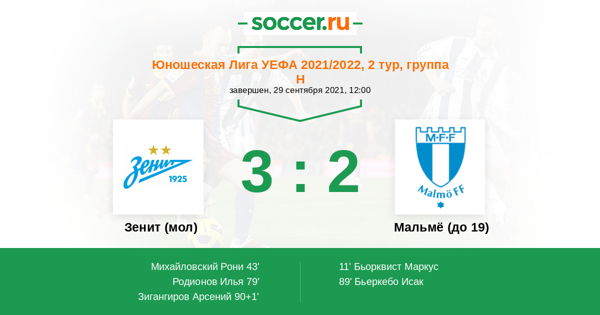 Зенит (мол) - Мальмё (до 19): обзор матча 29 сентября 2021