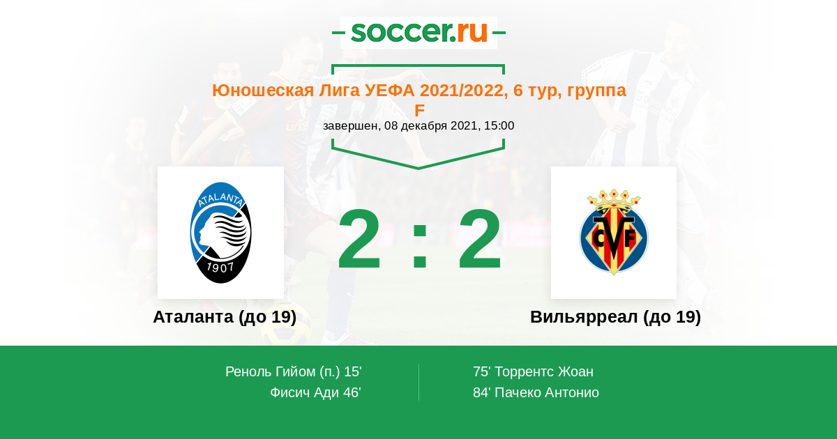 Аталанта (до 19) - Вильярреал (до 19): обзор матча 8 декабря 2021