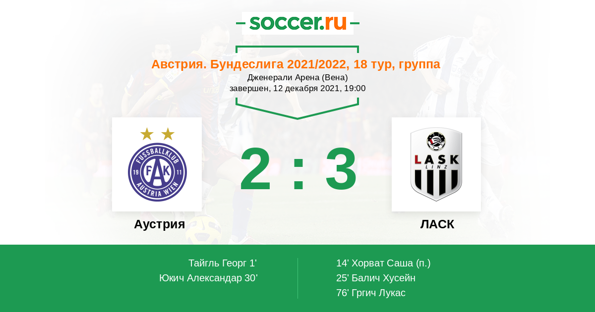 Аустрия - ЛАСК: обзор матча 12 декабря 2021