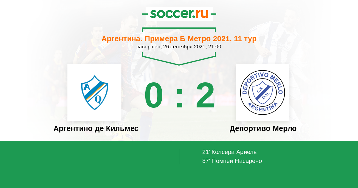 Аргентино де Кильмес - Депортиво Мерло: обзор матча 26 сентября 2021