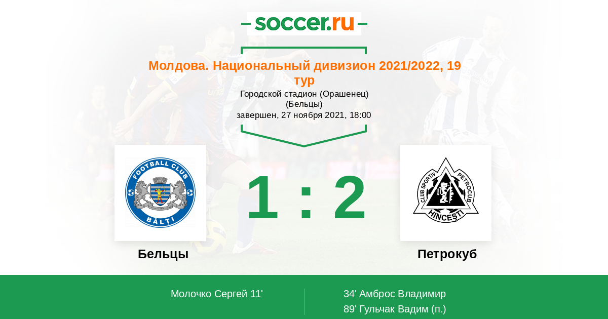 Бельцы - Петрокуб: обзор матча 27 ноября 2021