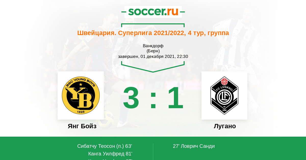 Янг Бойз - Лугано: обзор матча 1 декабря 2021