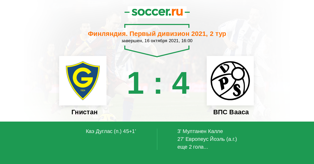 Гнистан - ВПС Вааса: обзор матча 16 октября 2021