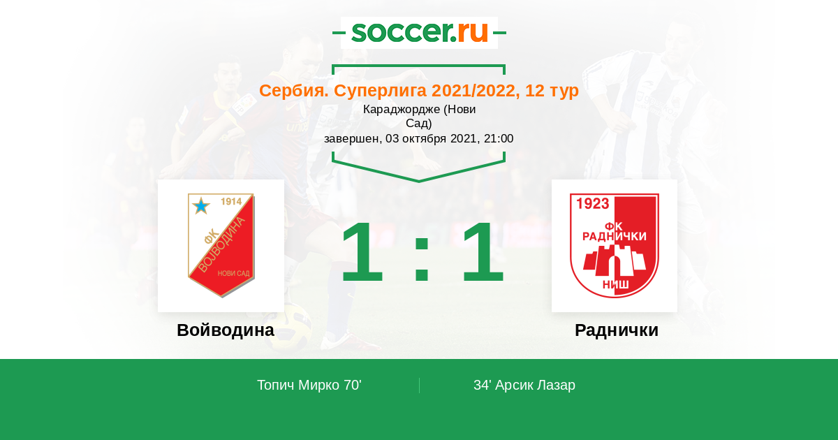 Войводина - Раднички: обзор матча 3 октября 2021
