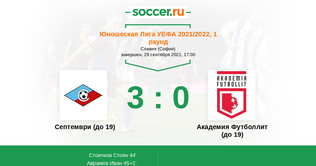 Септември (до 19) - Академия Футболлит (до 19): обзор матча 29 сентября 2021