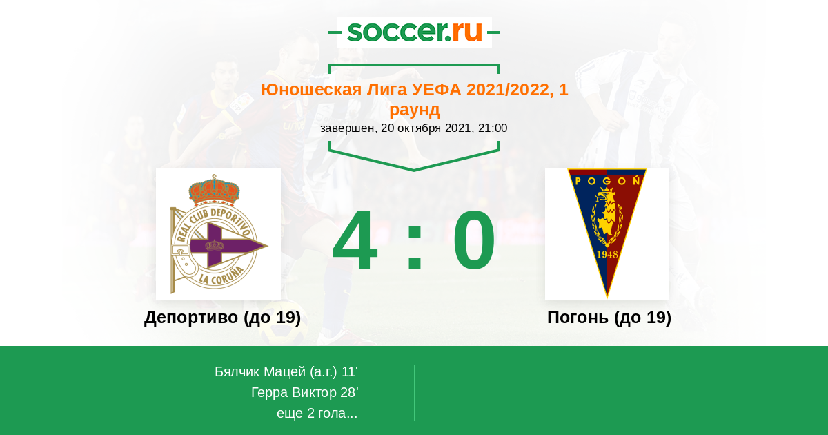 Депортиво (до 19) - Погонь (до 19): обзор матча 20 октября 2021