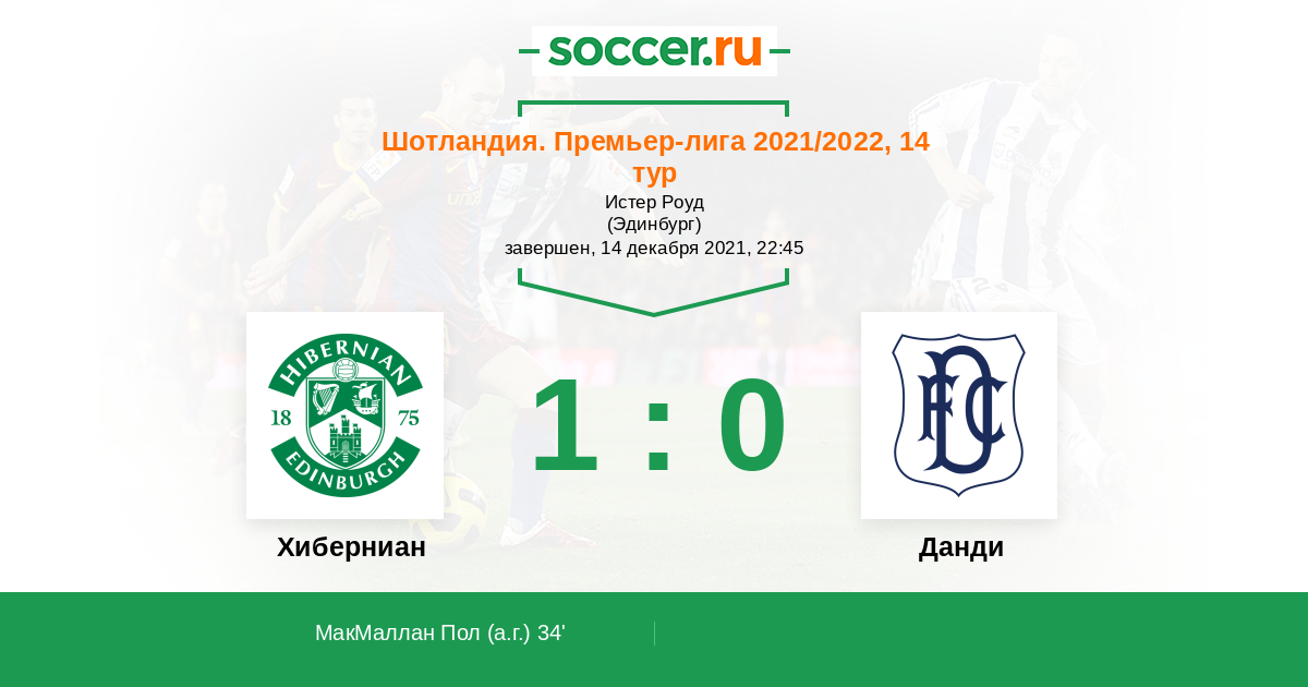 Хиберниан - Данди: обзор матча 14 декабря 2021