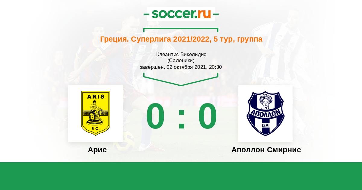 Арис - Аполлон Смирнис: обзор матча 2 октября 2021