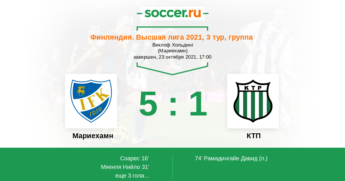 Мариехамн - КТП: обзор матча 23 октября 2021