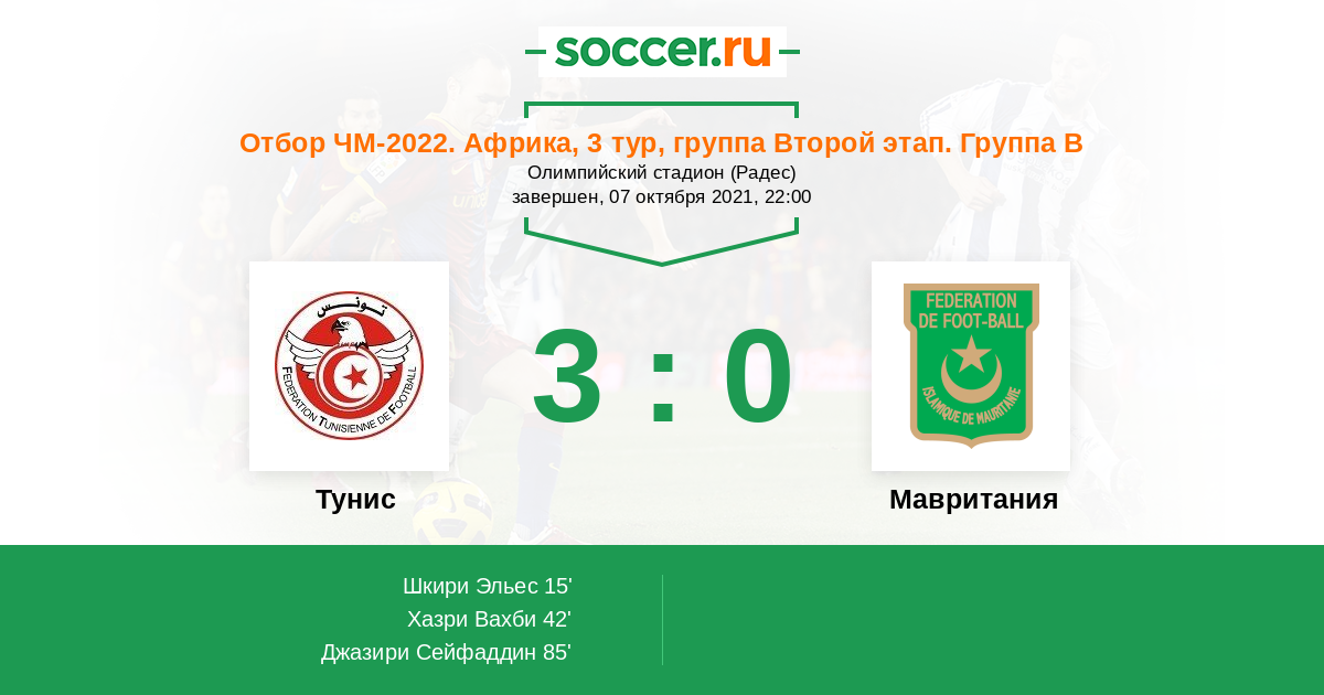 Тунис - Мавритания: обзор матча 7 октября 2021