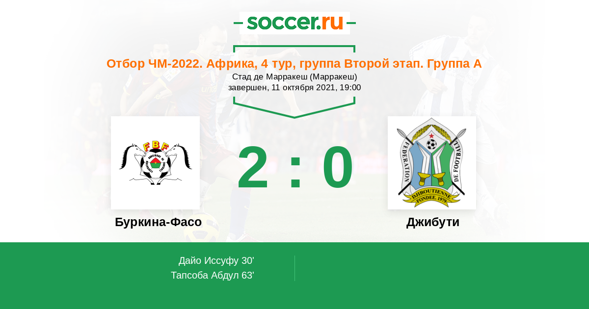 Буркина-Фасо - Джибути: обзор матча 11 октября 2021