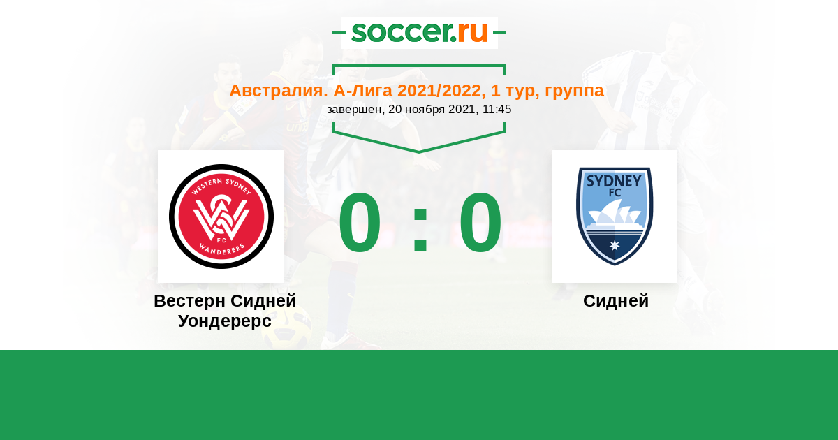 Вестерн Сидней Уондерерс - Сидней: обзор матча 20 ноября 2021