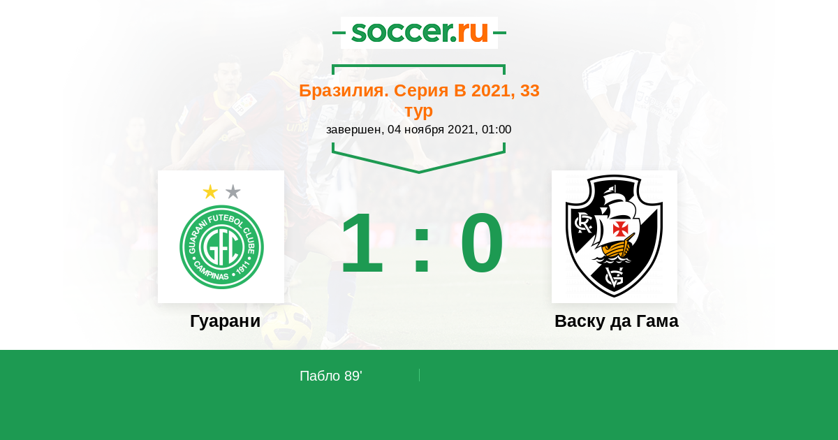 Гуарани - Васку да Гама: обзор матча 4 ноября 2021