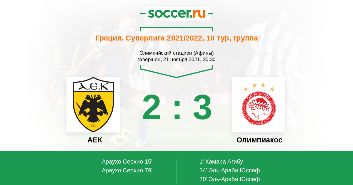 АЕК - Олимпиакос: обзор матча 21 ноября 2021