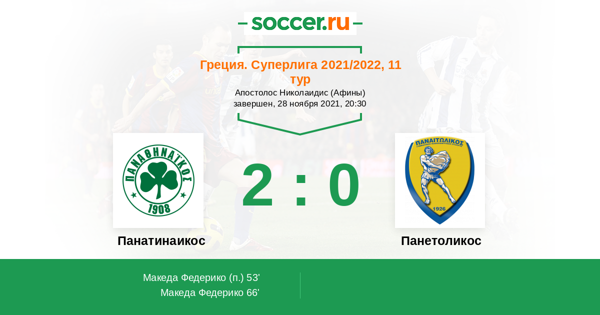 Панатинаикос - Панетоликос: обзор матча 28 ноября 2021