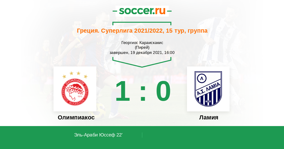 Олимпиакос - Ламия: обзор матча 19 декабря 2021