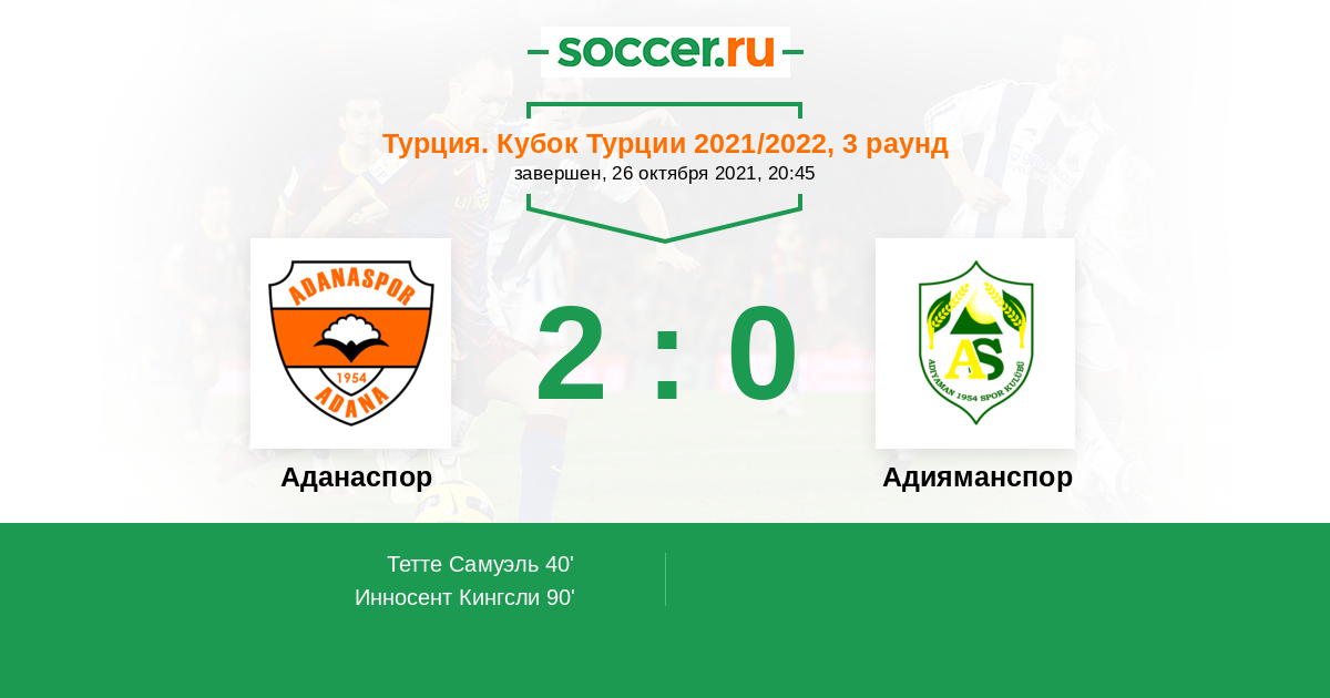 Аданаспор - Адияманспор : обзор матча 26 октября 2021