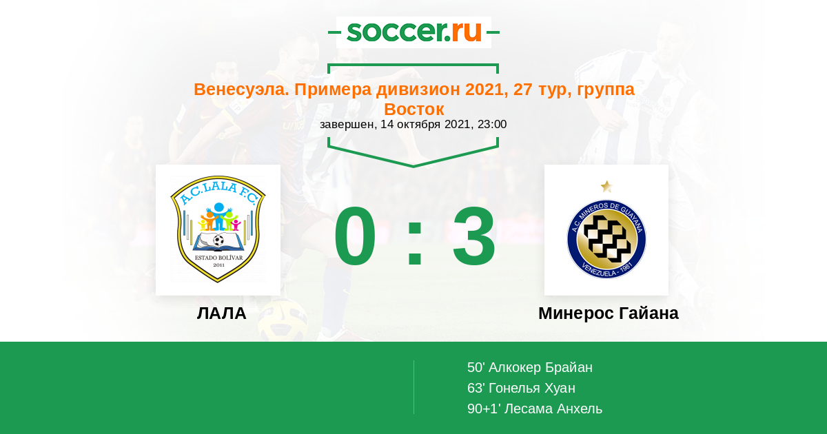 ЛАЛА - Минерос Гайана: обзор матча 14 октября 2021