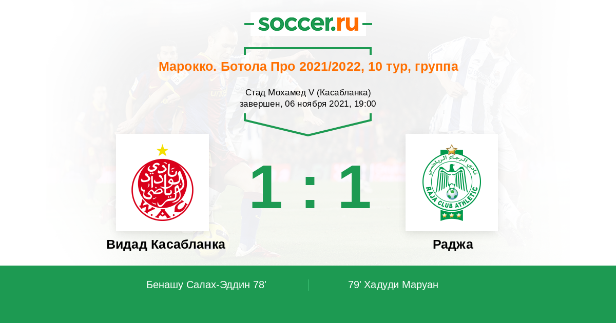 Видад Касабланка - Раджа: обзор матча 6 ноября 2021