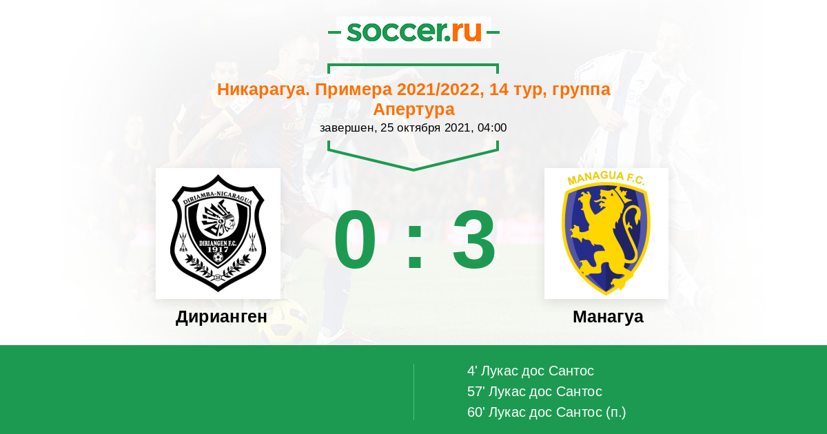 Дирианген - Манагуа: обзор матча 25 октября 2021