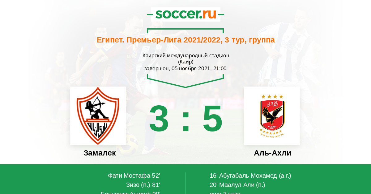 Замалек - Аль-Ахли: обзор матча 5 ноября 2021