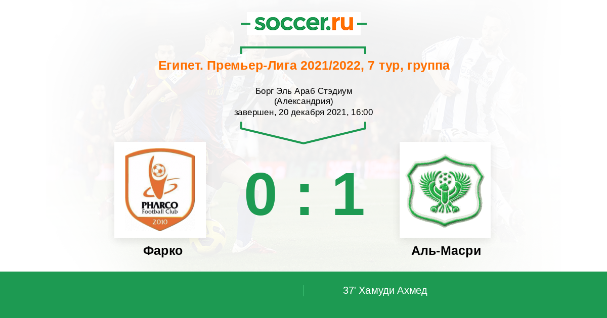 Фарко - Аль-Масри: обзор матча 20 декабря 2021
