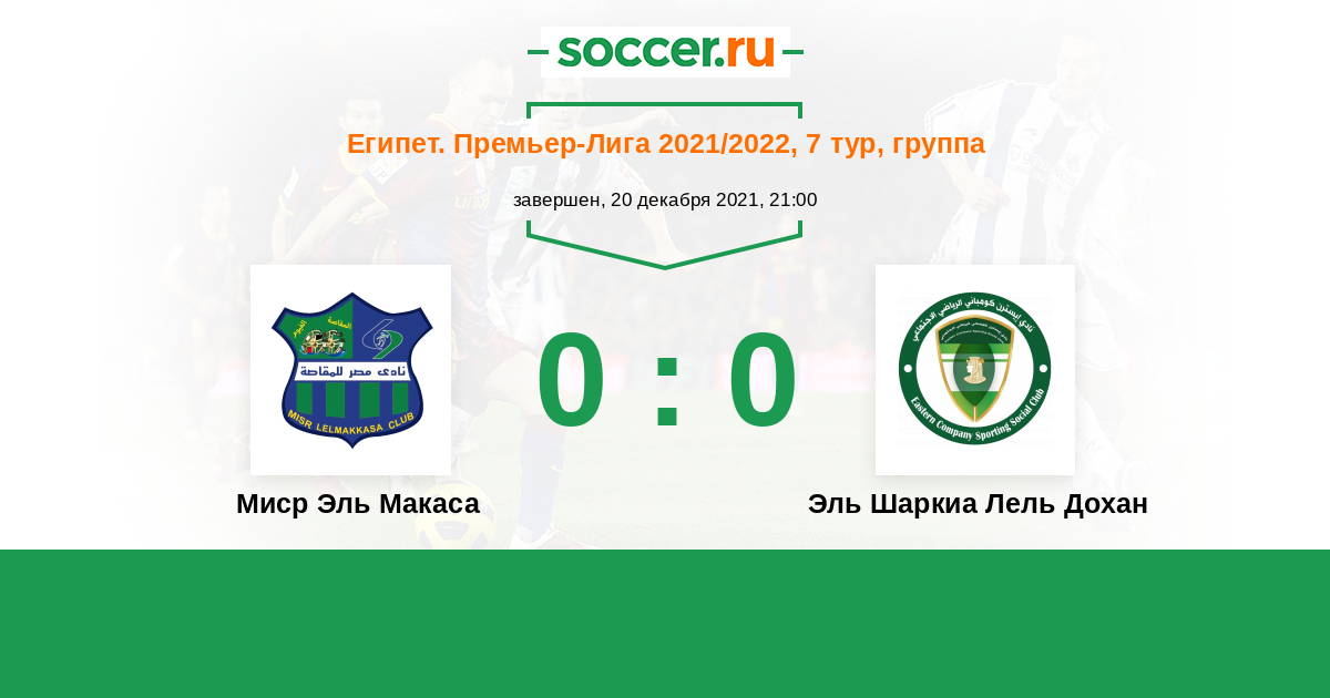 Миср Эль Макаса - Эль Шаркиа Лель Дохан: обзор матча 20 декабря 2021
