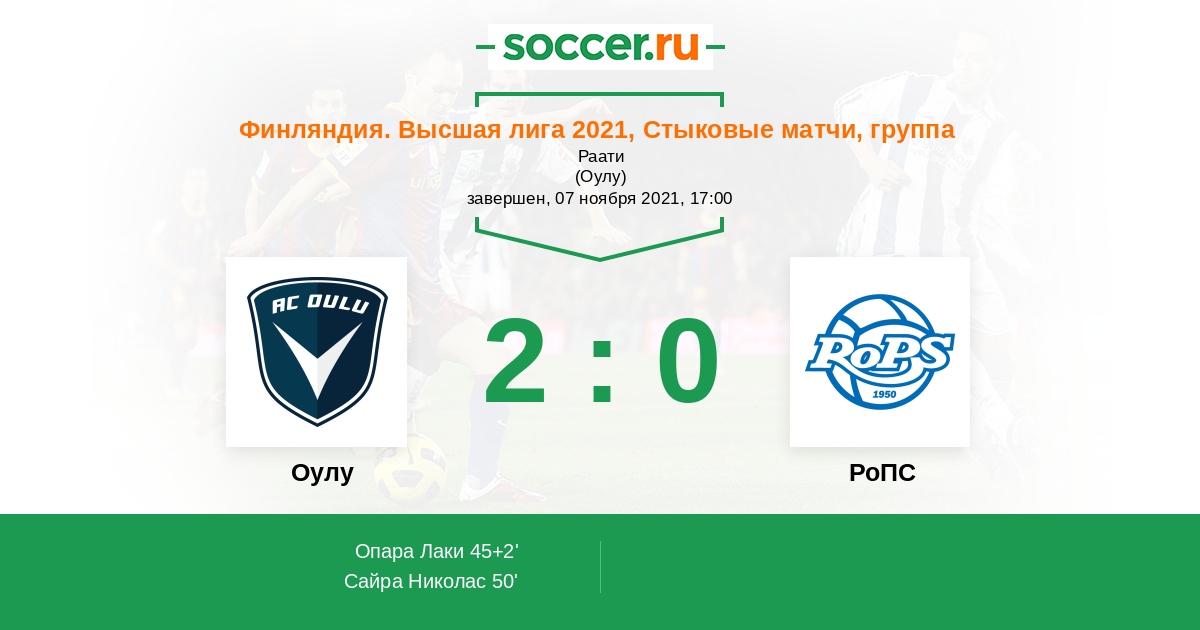 Оулу - РоПС: обзор матча 7 ноября 2021