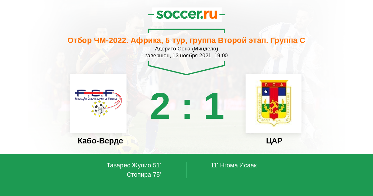Кабо-Верде - ЦАР: обзор матча 13 ноября 2021