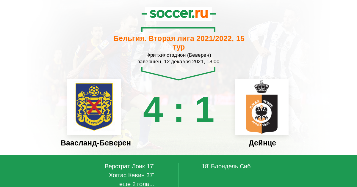 Ваасланд-Беверен - Дейнце: обзор матча 12 декабря 2021