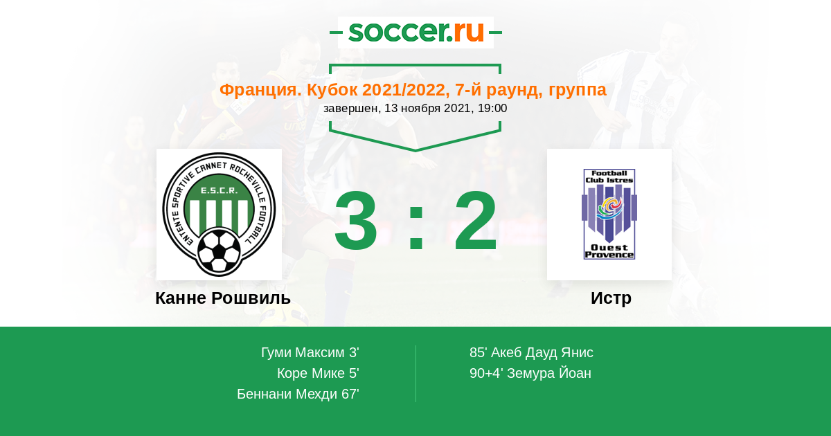 Канне Рошвиль - Истр: обзор матча 13 ноября 2021