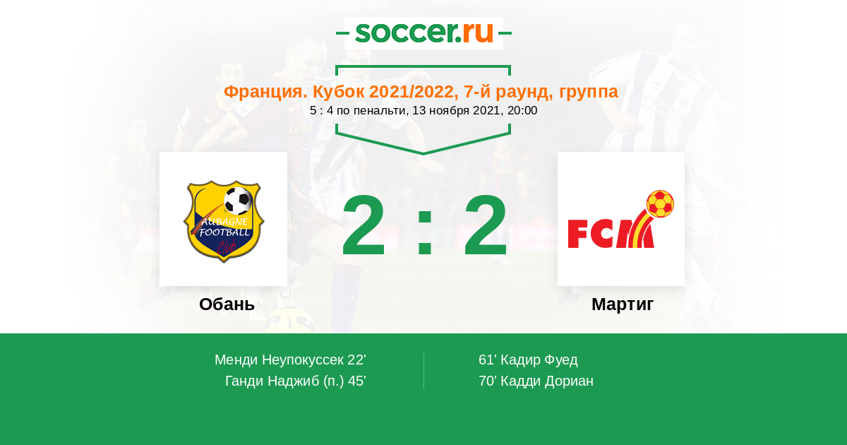 Обань - Мартиг: обзор матча 13 ноября 2021