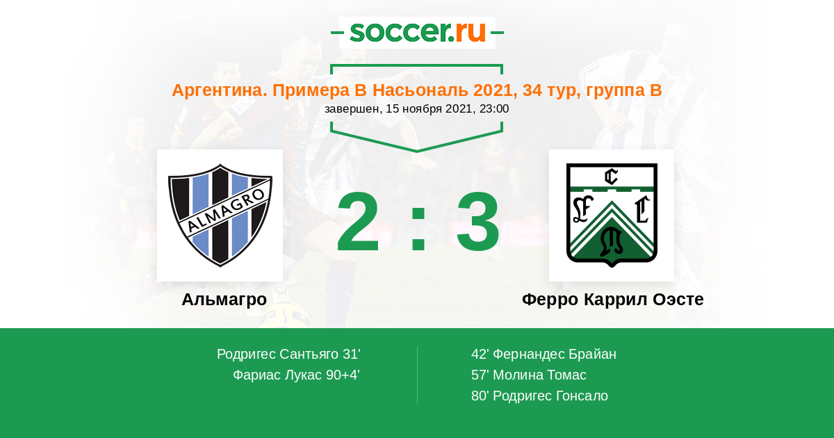 Альмагро - Ферро Каррил Оэсте: обзор матча 15 ноября 2021