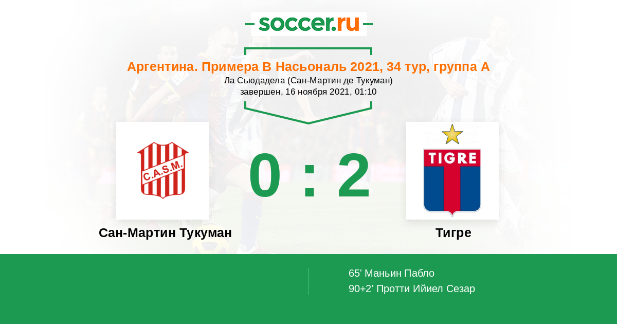 Сан-Мартин Тукуман - Тигре: обзор матча 16 ноября 2021