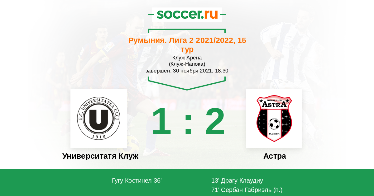 Университатя Клуж - Астра: обзор матча 30 ноября 2021